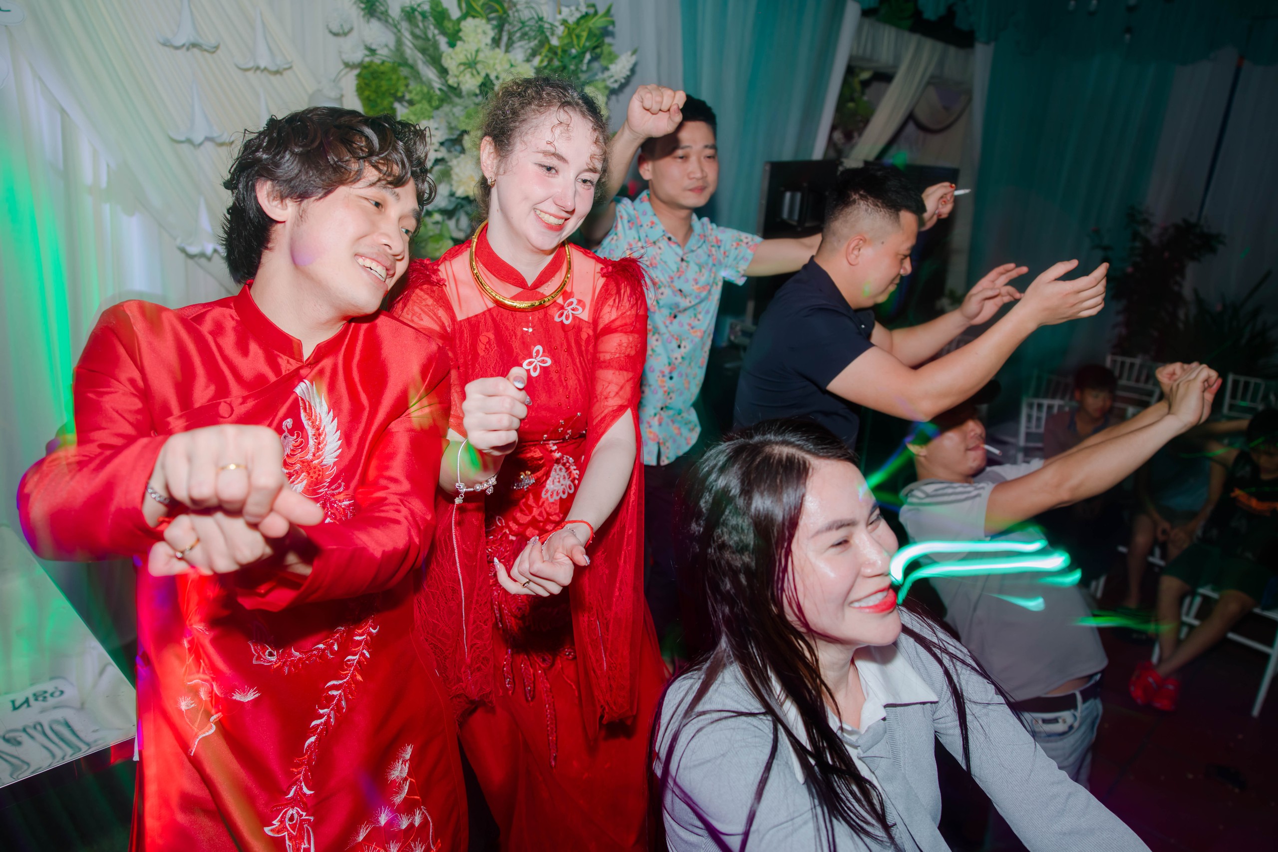 "Mình thấy vui và bất ngờ với phong tục cưới hỏi ở Việt Nam. Mình được chồng giải thích các nghi lễ trong ngày này, ở Đức đám cưới chỉ có ít người thân bạn bè đến chung vui, không đông người đến dự như ở Việt Nam", chị Jennifer Gleiser chia sẻ.