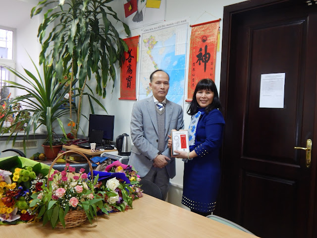 Thay mặt báo người xứ Nghệ Kiev, nhà thơ Đỗ Thị Hoa Lý tặng hoa chia sẻ niềm vui được tham dự ngày vui cùng các thầy cô. Nhân dịp này, một số tác phẩm văn học Việt Nam như Truyện Kiều, Nhật ký Đặng Thùy Trâm (bản dịch tiếng Nga của nhà thơ Nguyễn Huy Hoàng), Ca dao – Tục ngữ Việt Nam… đã được nhà thơ kính tặng Trung tâm Việt Nam học với hy vọng đóng góp vào thư viện vốn đang rất thiếu thốn và mong mỏi một ngày không xa, các tác phẩm văn học Việt Nam sẽ được dịch ra tiếng Ukraina.