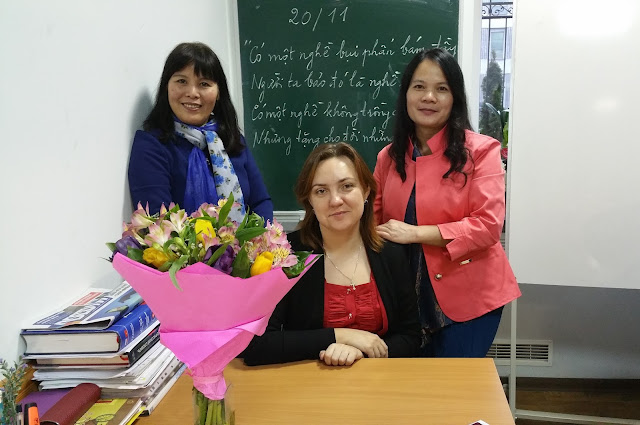 Về phía nhà trường, thầy trưởng khoa ngôn ngữ Trung Quốc - Hàn Quốc và Nhật Bản B.I. Petrovich thể hiện niềm vui khi hiểu được ý nghĩa về ngày lễ tri ân các Nhà giáo. Thầy bày tỏ niềm khâm phục các giáo viên, các em sinh viên trong quá trình chinh phục ngôn ngữ phương Đông – ngôn ngữ mới mẻ và không dễ dàng đối với người Ukraina.