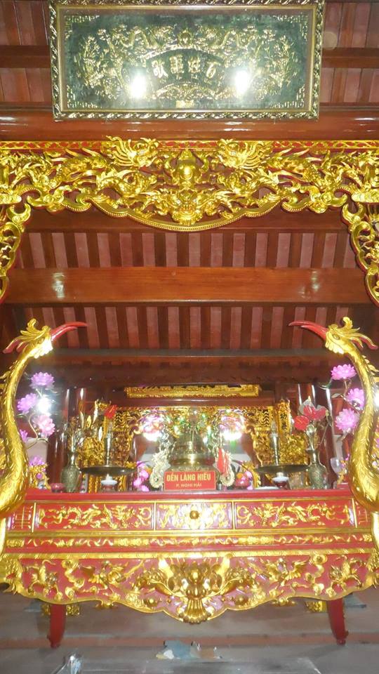 - Căn cứ vào 6 đạo sắc phong, xưa nhất của vua Lê Hiến Tông, niên hiệu Cảnh Hưng năm thứ 44 ( năm 1784) thể kỷ thứ 17- Đền làng Hiếu thờ một vị đại thần có công giúp nước và khai khẩn đất hoang lập nên làng. Dân cư sinh sống ở đây ngày càng phát triển đông vui. Đền được người dân vùng biển Nghi Hải trông coi thờ phụng. Trưởng Ban quản lý đền làng Hiếu là ông Trần Bạch Mai, 86 tuổi, phó ban quản lý ông Hoàng Đại Lợi, 40 tuổi.