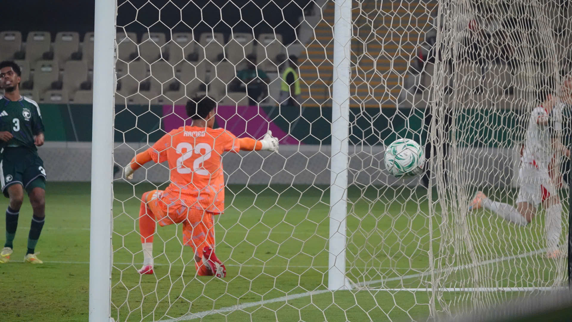 Đình Bắc khiến khán đài sân vận động Prince Abdullah Al-Faisal (Saudi Arabia) như chết lặng với pha bứt tốc và dứt điểm khó tin này. Ảnh: Ted Trần