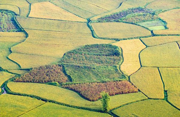 Cả thung lũng “nhuộm” màu vàng óng của những thảm lúa bước vào mùa gặt (Ảnh: FB Truong Van Bay)