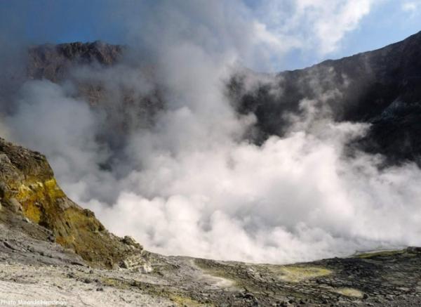 Khám phá núi lửa trong lòng biển: Núi lửa Whakaari ở Otago (New Zealand) là nơi mà khách không phải đi bộ để đến nơi. Ngọn núi vẫn đang hoạt động. Ảnh: Getty.