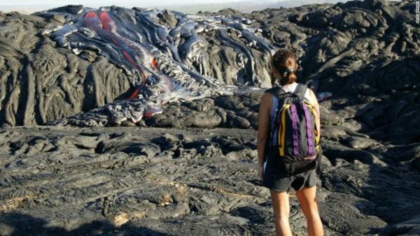 Trong vườn quốc gia, bạn có thể đi bộ qua động dung nham 500 tuổi, đi xe xuống thị trấn Kalpana để ngắm Kilauea tuôn chảy nham thạch xuống biển. Nếu muốn nhìn cận cảnh hơn, hãy chèo thuyền hoặc bay thẳng bằng trực thăng. Tour đi thuyền có giá gần 190 USD (khoảng 4,3 triệu đồng) và 282 USD (gần 6,4 triệu đồng) cho tour bằng trực thăng. Ảnh: