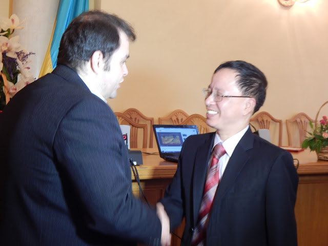 Về phía nhà trường, thầy trưởng khoa ngôn ngữ Trung Quốc - Hàn Quốc và Nhật Bản B.I. Petrovich thể hiện niềm vui khi hiểu được ý nghĩa về ngày lễ tri ân các Nhà giáo. Thầy bày tỏ niềm khâm phục các giáo viên, các em sinh viên trong quá trình chinh phục ngôn ngữ phương Đông – ngôn ngữ mới mẻ và không dễ dàng đối với người Ukraina.
