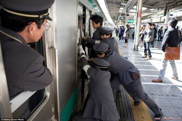 Những nhân viên xếp chỗ tại các nhà ga Nhật Bản còn được gọi bằng cái tên thân thuộc là oshiya hay người đẩy khách. Với số lượng người sử dụng phương tiện công cộng lớn, giờ tan tầm ở Nhật Bản luôn diễn ra tình trạng kẹt cứng ở các ga tàu. Vì vậy, các oshiya có nhiệm đẩy và sắp xếp khách cho vừa các khoang và đảm bảo tàu chạy đúng giờ. Ảnh: timeout |