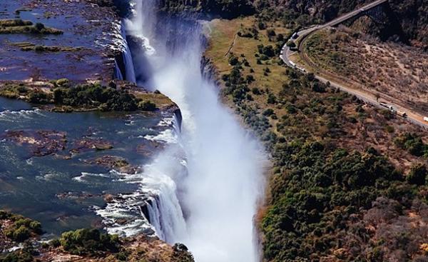 Thậm chí cách tới 40km mà vẫn có thể nhìn thấy lớp hơi nước như làn sương mỏng bốc lên từ lòng thác. Thác Victoria cao gấp đôi và dài gấp rưỡi thác Niagara nằm ở biên giới Mỹ - Canada. Cứ mỗi giây, thác Victoria ném xuống vực sâu hơn 100m khoảng 1.100m3 nước và là dòng thác có lưu lượng nước lớn nhất thế giới.